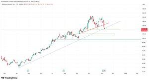 $HOOD - 绿色线条和框是我考虑买入的地方。价格越低,仓位越大,不确定我们是否有幸能以低于 $100 的价格入场,但这将是一个巨大的礼物。这个支撑位和趋势线可能是它能跌到的最低点。