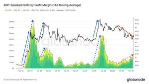 与之前与反弹相一致的利润实现波动不同,自九月底以来,随着XRP从$3.09(约25%)跌至$2.30,利润实现量(7日移动平均)激增了约240%,从$6500万/天增加到$2.2亿/天。 这种背离凸显了在疲软中进行分配,而非在强势中。 📉
