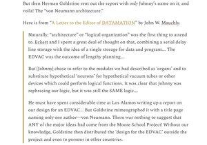 有趣的是,约翰·冯·诺依曼并没有发明冯·诺依曼架构。赫尔曼·戈德斯坦只是把约翰尼的名字放在了报告上。