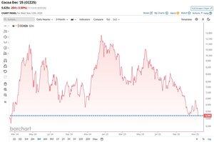 突发 🚨:可可 巧克力爱好者欢呼 🍫🥳 可可的收盘价已降至自2024年2月以来的最低水平 📉📉
