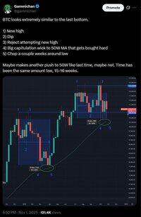 得到了当前的底部(第二次突破50周移动平均线) 得到了上涨至$107k,并且这将是阻力位 得到了这次最新的上涨(到目前为止只有$2k,但很高兴它保持了poc)