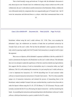 这完全忽视了用户控制自己资产并使用私钥执行自己交易的现实。更糟糕的是,这一论点自信地提交给美国法庭,反对一个人的自由。因此,在为这个案件准备了多年之后——包括为审判学习、听取数小时的证词和质询专家——这就是SDNY所能提供的最好论据。要么SDNY不明白,要么故意误解事实。