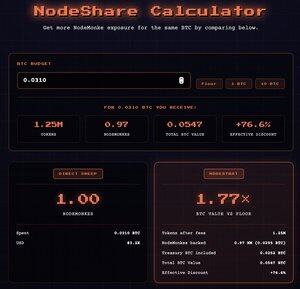 你知道通过购买等值的我们的代币,你可以获得77%的NodeMonke曝光吗?我们创建了一个计算器,可以显示你的代币在比例上代表多少基础NodeMonkes和国库BTC。请查看下面的内容: