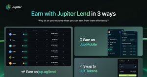 Jupiter Lend 让你以三种方式开始赚取收益: 1. 赚取收益于 2. 在 Jupiter Mobile 上赚取收益 3. 通过直接交换为收益-bearing jlX 代币(如 jlUSDC)赚取收益 不要错过轻松增长资本的机会