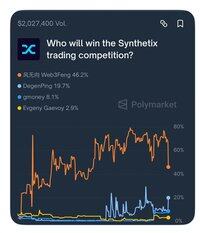 这正如我所想的那样发展。 还有3天。 Feng的获胜几率大幅下降。 Bodhi Ventures已经领先,现在DegenPing也参与了战斗。 如果你在我第一次给出这个大胆的波动时跟随了Feng的“否”,那就是100%的收益。