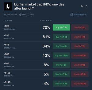 我刚刚在 Polymarket 上看到了 Lighter 的 FDV 预测。
