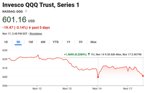 纳斯达克100指数 $QQQ 正迅速接近周五早上的低点: