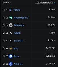 🚨 Solana 在过去 24 小时内的应用收入中超越了所有其他链