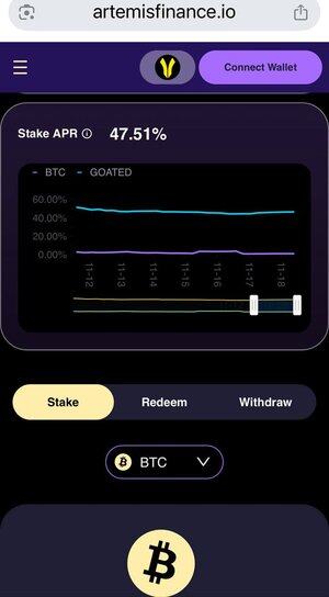 5. 想要赚取更多的 BTC 和 GOATED 奖励吗?领取后,在 @Artemisfinance 上质押,当前年利率:47.5%