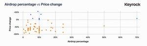 来自@ChainCatcher_的研究关于空投的另一个有趣见解,我最近引用过几次: 空投的规模直接影响价格表现。 小规模的空投导致初期卖压较小,但通常在几个月内会经历显著的抛售。 相反,大规模的分配会导致更早的波动,但会带来更强的长期表现,这表明慷慨会促进更大的忠诚度和代币支持。