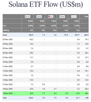 #Solana ETF现在已经连续17天流入——自推出以来仍然没有出现红色印刷。