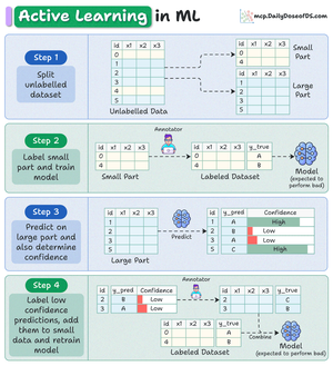 你正在Stripe进行机器学习工程师面试。 面试官问: “人们经常对他们实际进行的交易提出争议。 你会如何构建一个模型来预测这些虚假的争议,而没有任何标记数据?” 你: “我会标记争议率高的卡片。” 面试结束。 你错过了以下内容: 有一种叫做主动学习的技术,可以让你在没有标记数据的情况下构建监督模型。这比手动标注便宜且快速。 这个想法很简单:获取人类对模型最困难示例的反馈。 以下是它的工作原理: ↳ 从小开始:手动标记1-2%的数据。基于这个小数据集构建你的第一个模型。它不会很好,但这正是重点。 ↳ 生成预测:在未标记数据上运行模型并捕获置信度分数。概率模型在这里效果很好——查看前两个预测类别之间的差距。 ↳ 战略性标记:按置信度对预测进行排名。让人类仅标记置信度最低的示例。没有必要标记模型已经知道的内容。 ↳ 重复并改进:将标记数据反馈给模型。重新训练。模型会变得更聪明,了解它不知道的内容。 当性能达到你的要求时停止。 ...