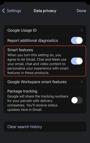 你知道 Gmail、Chat 和 Meet 可以访问你所有的消息和附件,并用它们来训练他们的 AI 模型吗? 更糟糕的是,你默认是选择加入的! 要在 Gmail 应用中选择退出,请前往设置 > 数据隐私 > 智能功能,然后关闭开关。