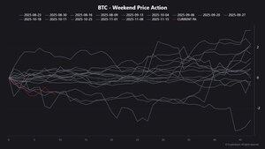 自周末开始,比特币下跌了约1%。到目前为止,这表现出相对较弱的周末表现。
