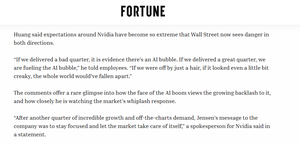 这很有趣,因为在上下文中,黄似乎在批评这些类型的账户和“市场评论员”,因为他们正是这样反应的 >微妙地称人们为白痴,声称无论Nvidia做什么,都是系统性风险 >人们用这些完全相同的话来声称Nvidia是系统性风险