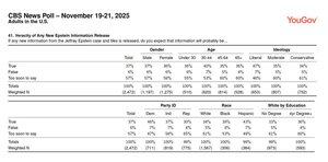 民主党人最有可能相信与杰弗里·爱泼斯坦案件相关的任何新“文件”发布将包含“真实”的信息。共和党人最不可能相信这一点。大多数人认为“现在说还为时尚早”,这比大多数媒体的态度更为谨慎。
