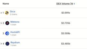 🚨更新:@orca_so 已经重新夺回了 @Solana 上按周交易量计算的最大 DEX 的 #1 位置。