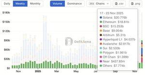 🚨突发:@Solana 在 DEX 交易量上连续第 14 周超越所有 L1 和 L2 链。