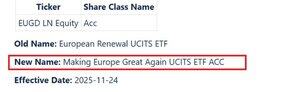 欧洲的一家发行商正在将其一只ETF的名称更改为“让欧洲再次伟大ETF”