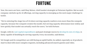 今天很高兴在《财富》杂志上被报道,谈论$GOOGL。 他们看到如此巨大的AI基础设施需求,以至于他们试图如此快速地将服务能力翻倍,这告诉你,AI悲观者的阴暗看法与实际情况并不一致。