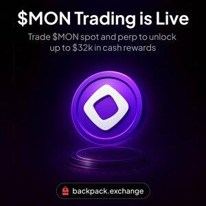 $MON 现货和期货现在在 Backpack 🎒💜 上交易 在 Monad Mania 期间交易可解锁高达 $32K 的奖励✨