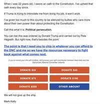 🚨 最新消息:令人作呕的是,民主党参议员马克·凯利正在筹款,支持军方煽动特朗普总统煽动叛乱,以及战争部对其煽动叛乱的调查。 “如果特朗普想恐吓我不做工作,那是行不通的。” “我需要你帮忙。” 恶心,马克!为试图毁掉军人们的生活道歉。如果他们中有人照你说的做,他们就完蛋了。