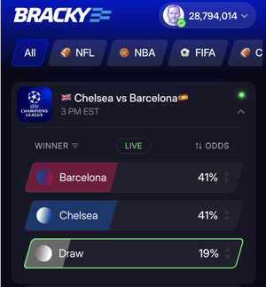 我喜欢在精彩的足球比赛中下注“平局”,因为这让我可以在不同的时间热情支持两支球队。 @BrackyHQ 给我在巴萨对切尔西的平局下注25美元! (这是我的世界杯准备)⚽️