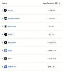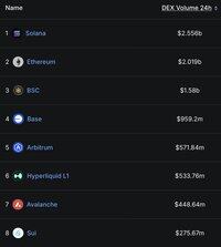 🚨更新:@Solana 在24小时内继续领先所有L1和L2链的DApp收入和DEX交易量。