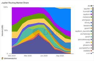所以 @humidifi 刚刚在 @JupiterExchange 的路由市场份额达到了历史最高的 48.9% 他们将在 12 月 3 日在 @jup_studio 上推出 $WET Jupiter🤝HumidiFi - @solana 的 MJ 和 Pippen