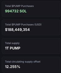 在过去的24小时内,pump fun购买了价值$852,055的$PUMP,这相当于前一天收入的98% 这使其总购买额达到$188,449,354。