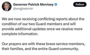 西弗吉尼亚州的州长现在表示,他收到了关于两名被枪击的国民警卫队员状况的“相互矛盾的报告”。
