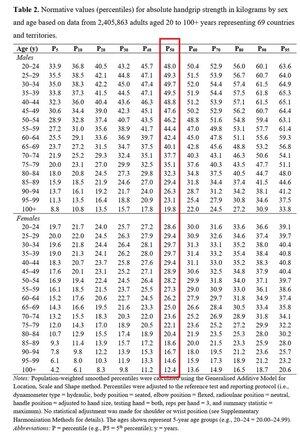 握力的性别差异很大,而年龄差异并没有想象中那么大。 这项240万的研究发现,男性的中位握力直到80多岁时才会降到中位峰值年龄(约35岁)女性的握力水平。(尽管可能存在一些选择偏差。)