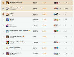 @cookiedotfun 祝贺韩国排行榜前10名的选手! 🥇