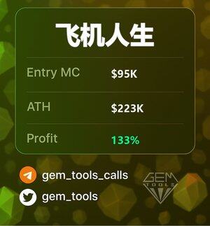 🎲 Our bot has called: $飞机人生! 📊 MC: $95.6K ➜ $223.6K 📜 CA: 0x45c27a4d19d0885ce50ea4d6d0f878a1bfac4444 Join us 👉
