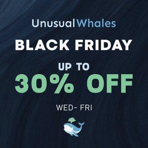 黑色星期五促销 Unusual Whales 正在进行黑色星期五促销。 促销将在六小时内结束! 首年最高可享受 30% 的折扣! 快来加入我们的交易社区,构建您梦想中的交易数据仪表板,与市场一起畅游吧! 点击这里加入: