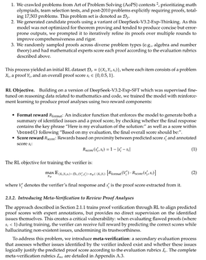 ……为了实现自我可验证的数学推理,我们研究如何训练一个准确且可信的基于LLM的定理证明验证器。然后,我们使用验证器作为奖励模型训练一个证明生成器,并激励生成器在最终确定证明之前识别和解决尽可能多的问题。为了在生成器变得更强大时保持生成-验证差距,我们建议扩展验证计算,以自动标记新的难以验证的证明,从而创建训练数据以进一步改善验证器。我们得到的模型DeepSeekMath-V2展示了强大的定理证明能力,在IMO 2025和CMO 2024上获得了金级分数,并在Putnam 2024上以缩放的测试时间计算获得了近乎完美的118/120。尽管还有很多工作要做,但这些结果表明,自我可验证的数学推理是一个可行的研究方向,可能有助于开发更强大的数学AI系统。