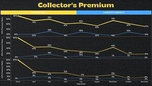 收藏者溢价是指人们在与领先的ETH收藏品相比时,超出地板价的幅度。这是并且仍然是我们在数据中看到的一个优势,地板价的溢价分别为10%、25%和50%。我们有一个收藏者社区💎