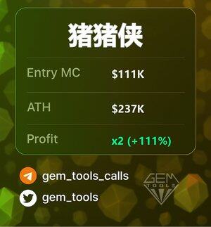 🎲 Our bot has called: $猪猪侠! 📊 MC: $111.9K ➜ $237.1K 📜 CA: 0xe1474ea59dd4e5fbe40779ada84ea20bb3a94444 Join us 👉