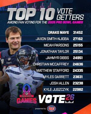 投票领先的球员! 发布 #ProBowlVote + 球员的名字来投票,或访问