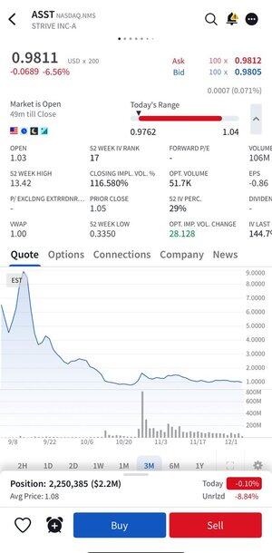 我已经以98美分的价格增加了250,000股ASST。现在持有225万股,并希望在市场情绪改善之前继续增持。