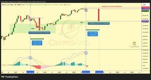 $BTC刚刚确认了看跌的月度交叉,确认了触发2022年-68%回撤的相同高时间框架结构。 价格触及了月度供应,动能翻转,下行的FVG暴露出来。 这次会有所不同吗?
