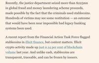 如往常一样,关于加密货币=犯罪的论点注定会在稳定币问题上出现,这就是为什么@katie_haun在《金融时报》的页面上提醒人们,传统银行系统、现金等——都要糟糕得多,实际上,按照目前的系统,通过区块链技术打击犯罪是相当强大的(我们需要解决隐私问题,但仍然……)