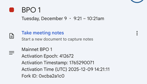 提醒:首个 fusaka BPO(仅限 blob 参数)升级将于明天上线!将把 blobs 从 6/9(目标/最大)提升到 10/15 更多的 blobs 意味着更少的拥堵,L2 的费用更低 纪元:412672 时间戳:1765290071 时间(UTC)2025-12-09 14:21:11 分叉 ID:0xcba2a1c0