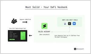 Solid是一个你可以每天使用的收益赚取链上银行。你的余额会自动增长,你可以通过Visa在任何地方消费 ➞ 无燃气费、无缝且非托管。
