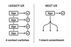 加密货币解决了共识问题,但在协调上失败了。 今天的每个多链应用都建立在一个不言而喻的假设上: 每条链都值得拥有自己的关注时刻。 这就是用户流失的原因。 不是因为费用高。 不是因为链速度慢。 而是因为每个操作都迫使进行上下文协商: “切换链。” “再次签名。” “在父链上批准。” “在子链上确认。” 我们称这些为“签名”,但它们实际上是别的东西: 认知中断。 意图的微小中断,破坏了流畅性。 这不是一个安全模型。 这是一个仍在按链孤岛思考的生态系统的用户体验债务。 这里是没有人准备的转变: 互操作性并不是关于移动资产。 而是关于合并决策表面。 一个意图。 一个承诺。...