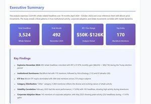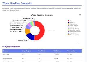 在3000多条头条新闻中,ETF主导了市场,同时伴随着心理价格标记(新的历史高点,突破$100k等)。