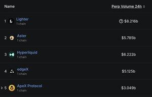 🚨 现在:Lighter 在永续 DEX 中以 82 亿美元的 24 小时交易量占据主导地位! 尽管 "竞争对手" 使用机器人、虚假交易量和洗盘交易,@Lighter_xyz 仍然以 20 亿美元的交易量领先。