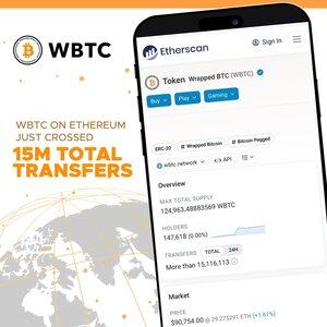 在Ethereum上,WBTC的总转账量刚刚达到1500万!