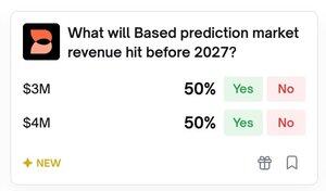 .@BasedOneX 的预测刚刚达到了每日收入 $11,000,仅在与 Polymarket 集成两周后 他们在短短几天内就上线了,随着产品的迭代,每日活跃交易者正在稳步增长 如果到 2026 年底他们的总收入超过 $5M,我也不会感到惊讶