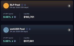 @pendle_fi 上的 USR 和 RLP 池明天到期。 這是滾動計劃: → 新的 RLP 池已經啟用。 到期日:2026 年 4 月 9 日 → USR 資產可以遷移到現有的 wstUSR 池中以繼續獲利。 到期日:2026 年 1 月 29 日 • LPs:部分 PTs 收益 + 交換費用 + Resolv 點數 • YTs:槓桿點數 • PTs:固定年化收益率 (APY)
